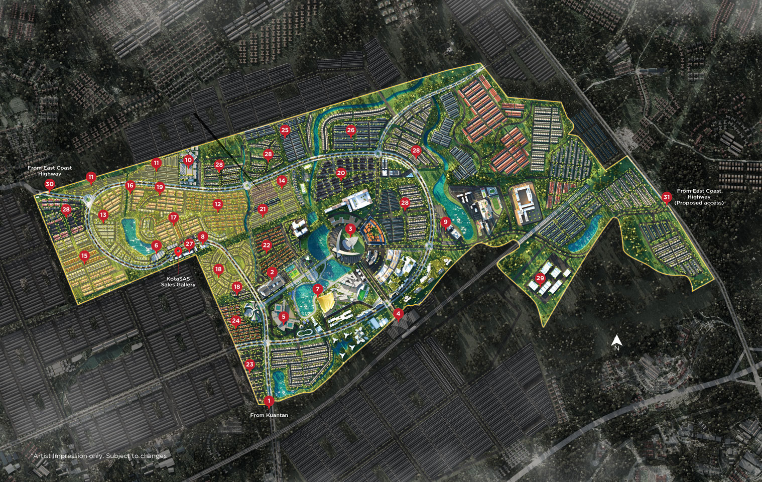 KotaSAS is an integrated mixed development township that is unparalleled to any other in the State of Pahang. Planned as a township that promotes green and healthy living, it will also be Kuantan’s new Central Business District and Financial Centre, New administrative capital for Pahang, a safe and secured township and a location for all future investments and growth.